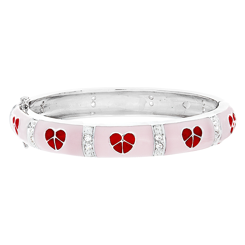 ER01- Enamel/rhodium bracelet with hearts Standard 6-7 inches wrist length Colors available: pink/red hearts, orange/pink hearts, turquoise/red hearts, black/pink hearts