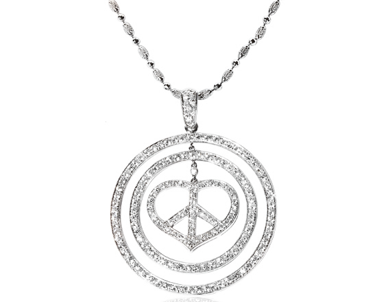 H2CP 18k white gold Heart in 2 circle pendant 4.07ct.