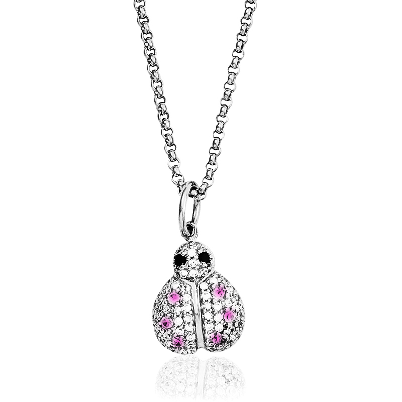 Sterling silver Pink Lady Bug 18″ necklace with 2″ extension.