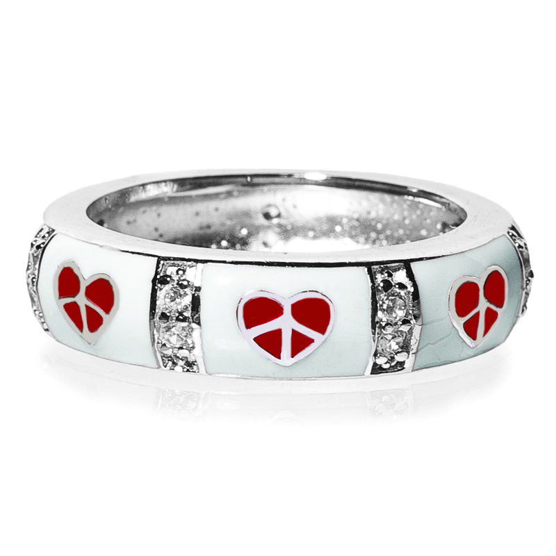 Sterling Silver, enamel heart and stripe ring.